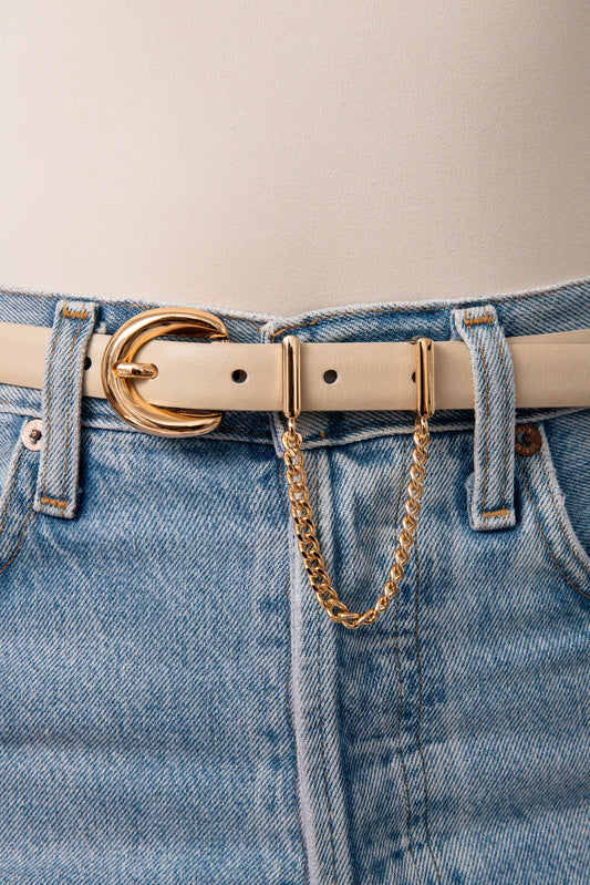 CLASSIC STUDDED SKINNY BELT IN VANILLA