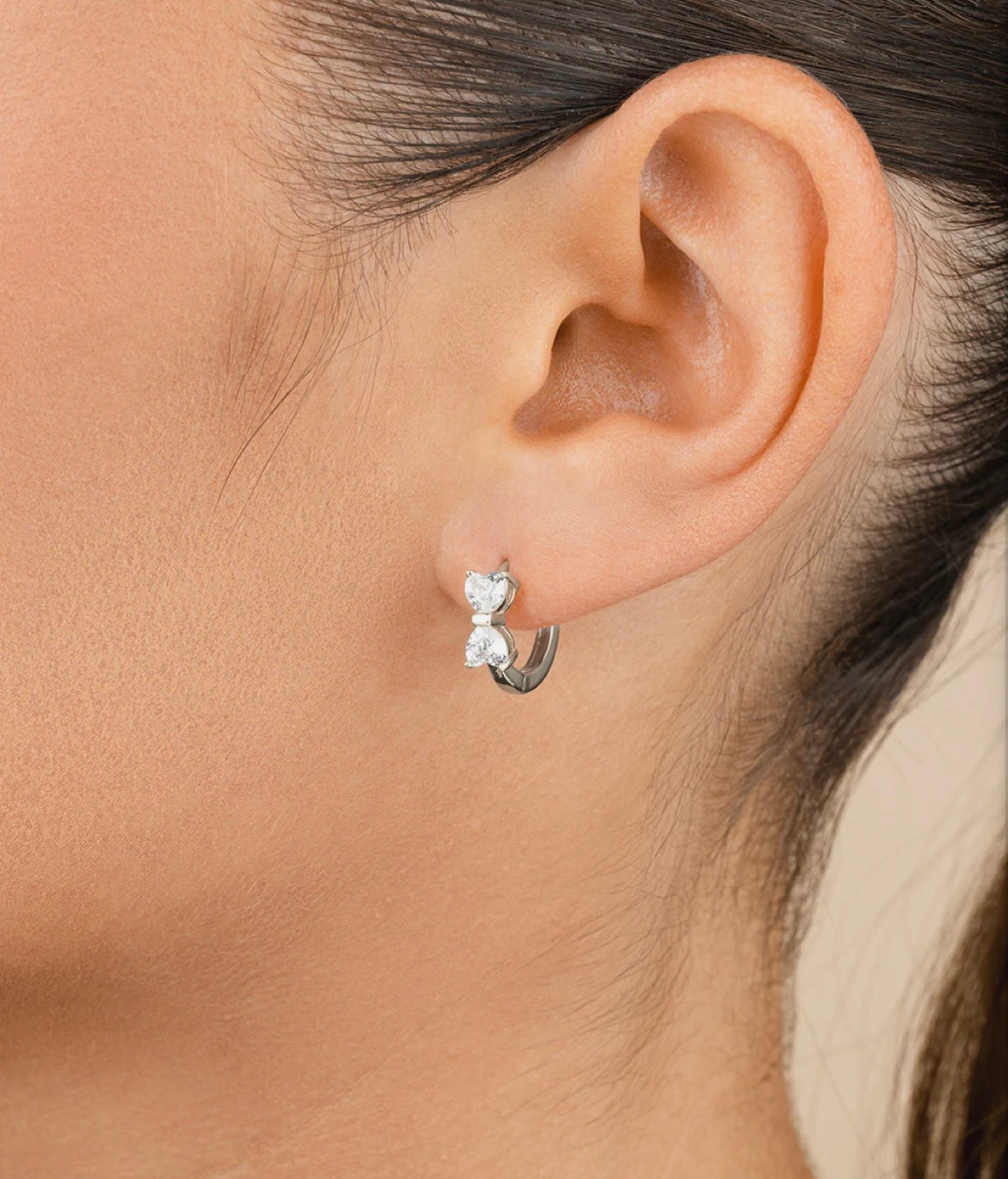 Add a touch of sophistication to any outfit with our Sterling Silver Ravenna Micro Hoop Earrings, featuring delicate micro hoops and two sparkling CZ hearts. Elevate your look with these elegant and exclusive earrings, perfect for any occasion.