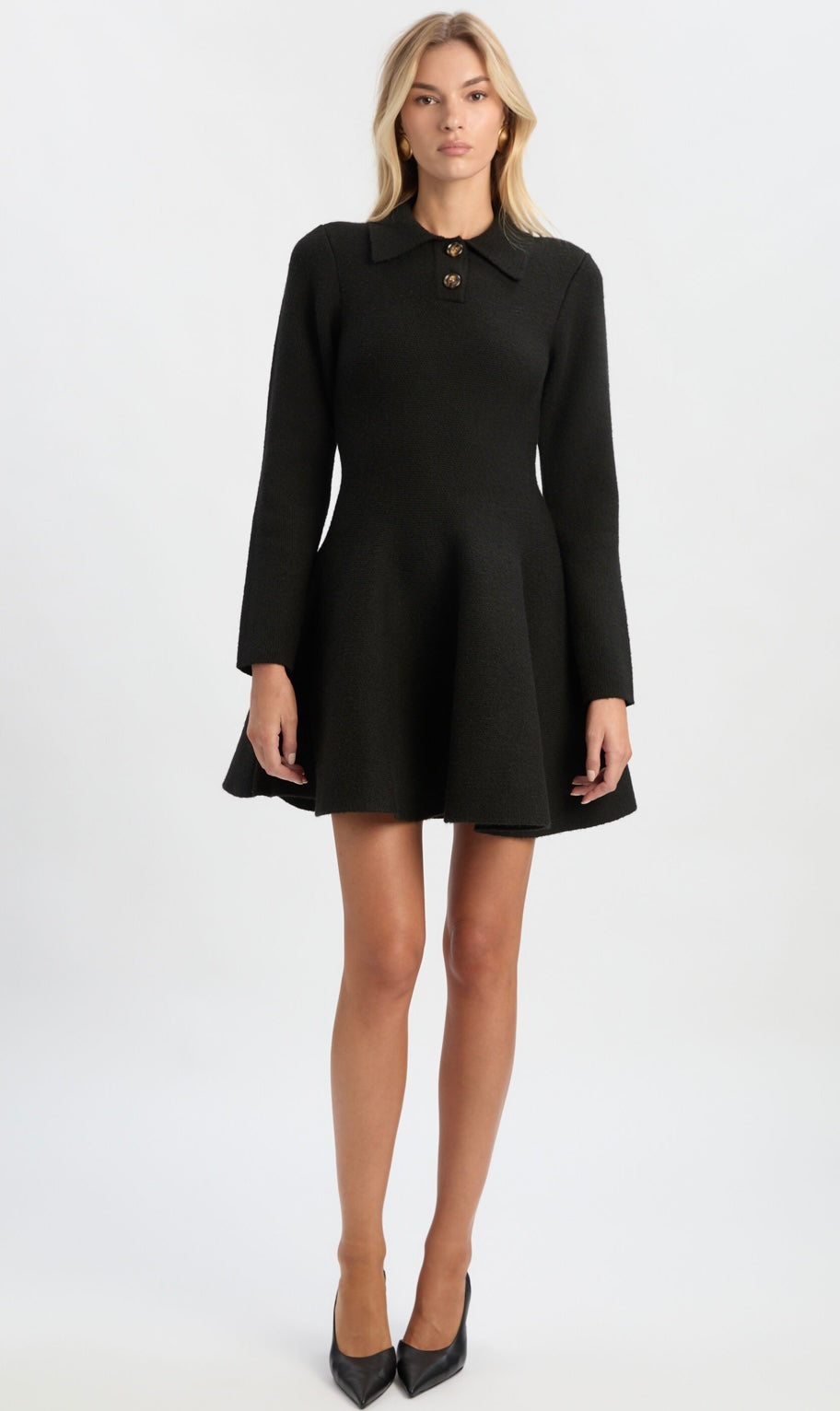 The Lexter Long Sleeve Knit Dress is all about effortless confidence. Crafted from soft knit with stretch for added comfort, this piece features a collared neckline and a functional placket for a touch of polish. Long sleeves balance the playful volume of the skirt, while the mini length makes it easy to style. Throw it on with chunky boots for daytime cool or swap in strappy heels for nights that stretch past midnight
